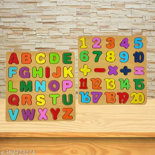 Name : 3d wooden capital alphabet and Numeric puzzles for children, montessori educational learning letters and Numbers puzzle board toy| combo of 2 boards
