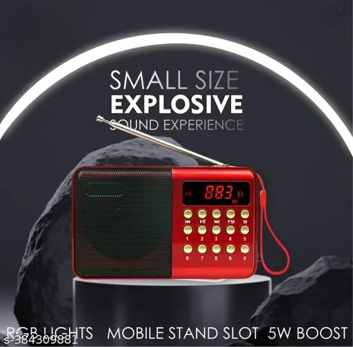 Name : Pocket FM Radio Portable Multimedia Speaker With Powerful Torch USB AUX And SD Card Input 12 Hours Playback Digital Clock External FM Antenna (Red)